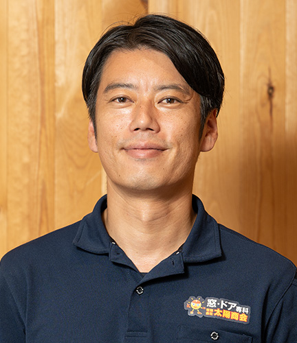 小学校、中学校、高校をとおしてサッカー三昧。姫路の大学を卒業してアルミサッシメーカーに入社。営業として3年間、四国最南端の高知県中村営業所に勤務。アルミサッシ、エクステリアの営業、業務のノウハウを学ぶ。実家の事業を支えるべく、17年前に(有)太陽商会に入社、昨年春に三代目社長に就任。住宅の省エネ、断熱化の先の安心、健康な住まいづくりを実現したいと考える。