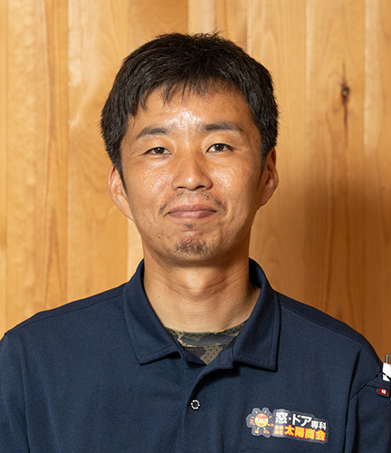 入社20年目のベテラン社員。住宅設備工事会社勤務を経て、当社に入社。以来、サッシ組立、ガラス工事、玄関ドア、面格子、シャッター取付など、当社の業務全般をこなす頼もしい兄貴分。